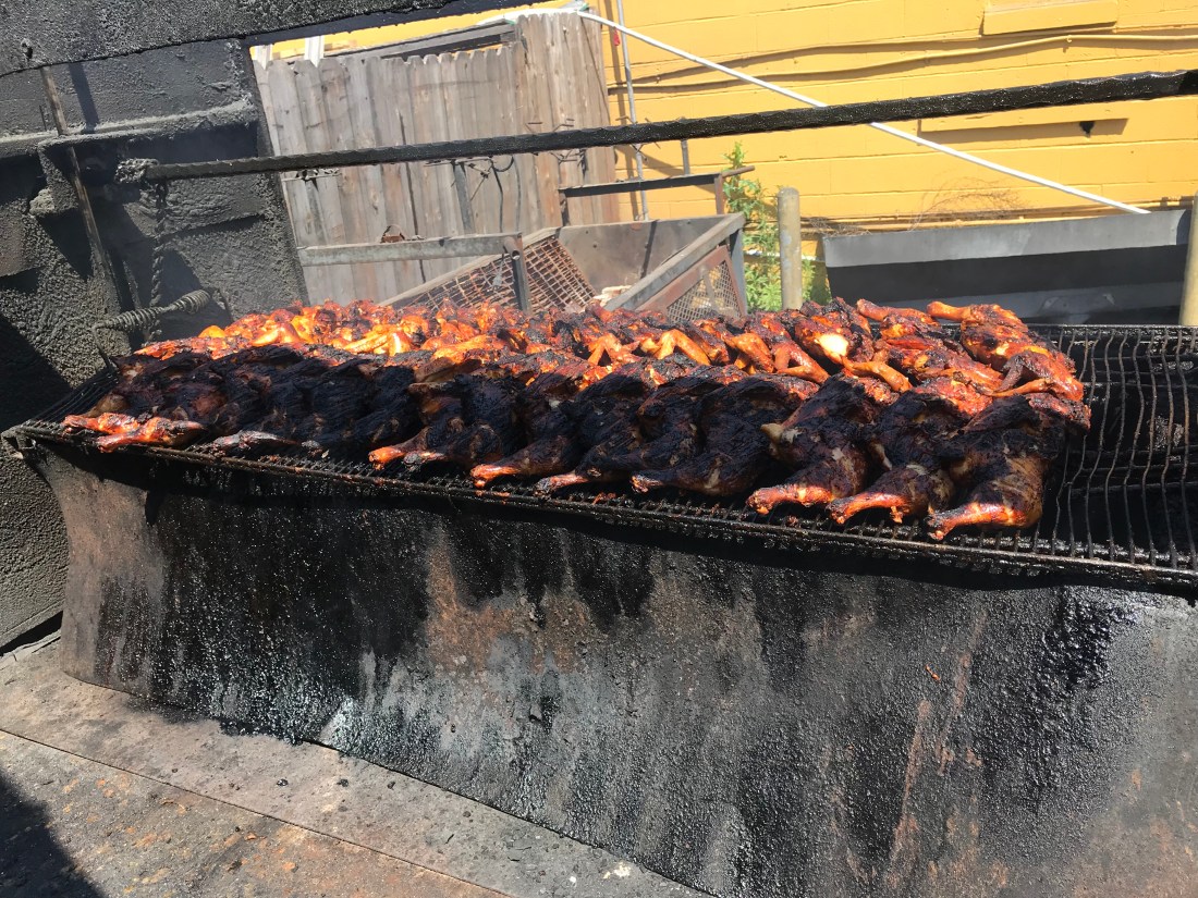 The Experience: when we first pulled up to the market on Saturday, we immediately walked over to the 2 grills where they were grilling chickens. The two grills are located on the left side of the market, kind of near the parking lot. The first thing I noticed about the grills was that they had 2 of them with open racks and charcoal below. The racks were all filled with chickens, each are different stages in their cooking process. After looking at the grills, We proceeded to look around for a little while until the chef came over to talk to us. At first, my Grandpa tried to ask him what type of seasoning they use on their chickens because he loves to grill. Unfortunately, the chef would not tell us because he said it was a secret. But, the chef did offer us some samples of the chicken. We replied by saying we were a little sad that he couldn’t give us the recipe but accepted the samples. Upon hearing us say yes, The chef proceeded to pull a chicken off the grill and cut it for us. He then handed us three pieces of chicken and we started to eat.